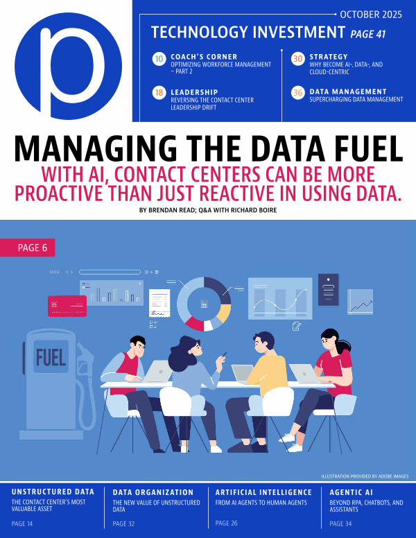 MANAGING THE DATA FUEL WITH AI, CONTACT CENTERS CAN BE MORE PROACTIVE THAN JUST REACTIVE IN USING DATA. BY BRENDAN READ; Q & A WITH RICHARD BOIRE