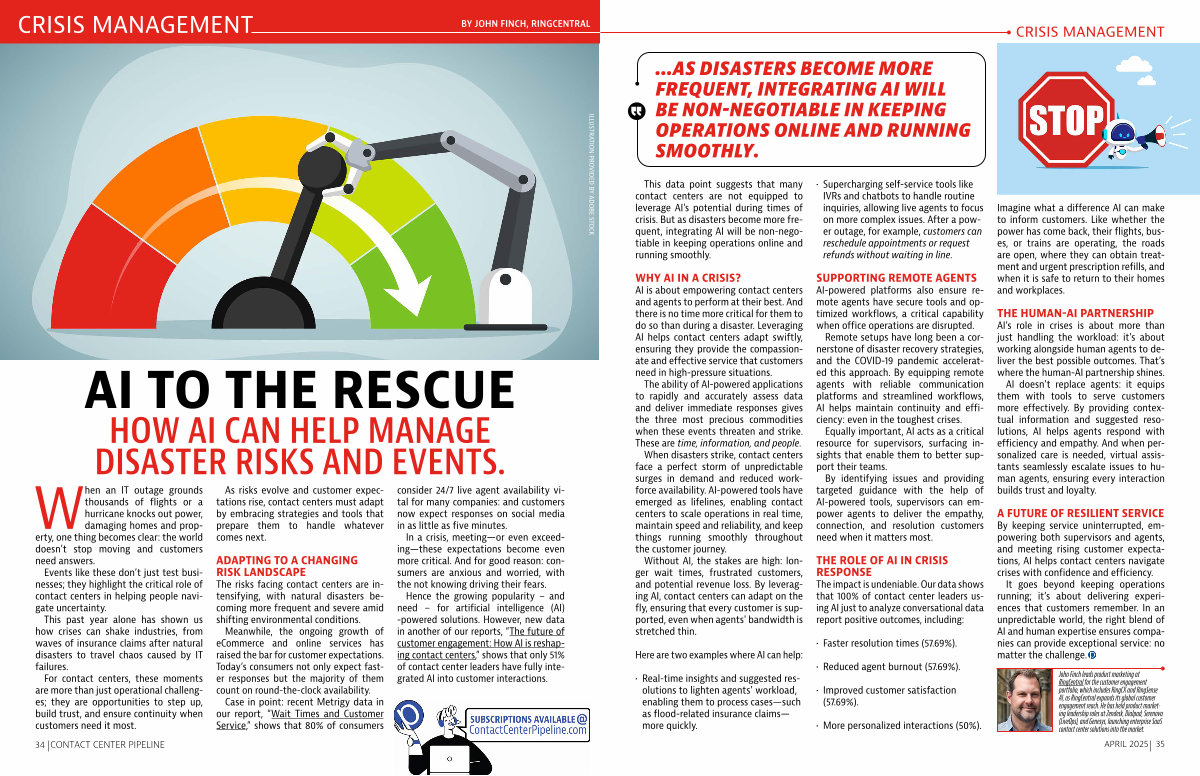 When disasters strike, contact centers face a perfect storm of unpredictable surges in demand and reduced workforce availability. AI-powered tools have emerged as lifelines, enabling contact centers to scale operations in real time, maintain speed and reliability, and keep things running smoothly throughout the customer journey.