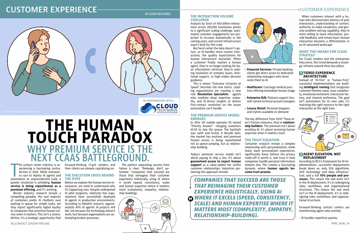 The contact center industry is experiencing a fascinating contradiction in 2026. While enterprises race to deploy AI agents and automation at unprecedented scale, a quieter revolution is unfolding: human service is being repositioned as a premium offering, and it ' s working.