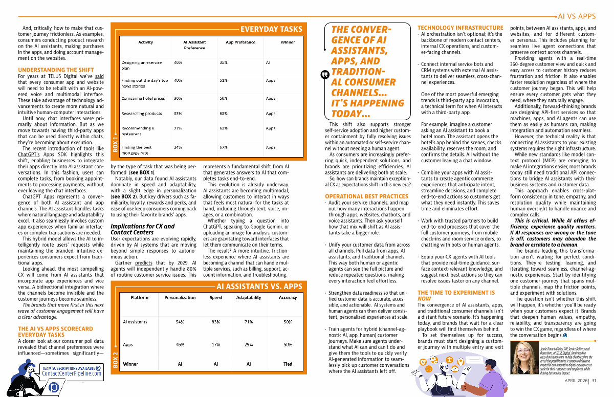 Looking ahead, the most compelling CX will come from AI assistants that incorporate app experiences and vice versa. A bidirectional integration where the channels become invisible and the customer journeys become seamless.