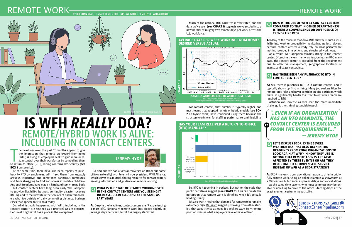 BY BRENDAN READ, CONTACT CENTER PIPELINE; Q & A WITH JEREMY HYDE, WFH ALLIANCE