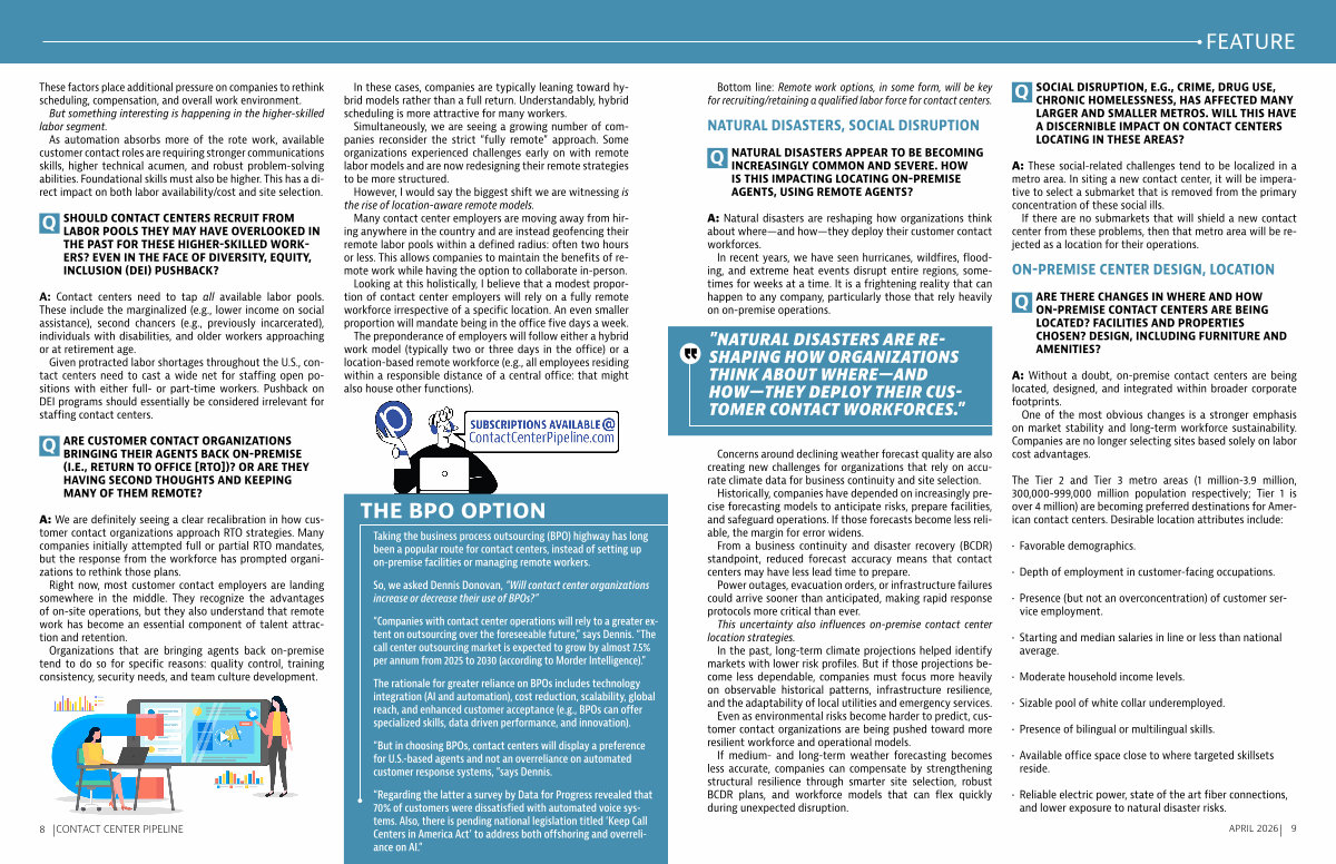 A: We are definitely seeing a clear recalibration in how customer contact organizations approach RTO strategies. Many companies initially attempted full or partial RTO mandates, but the response from the workforce has prompted organizations to rethink those plans.