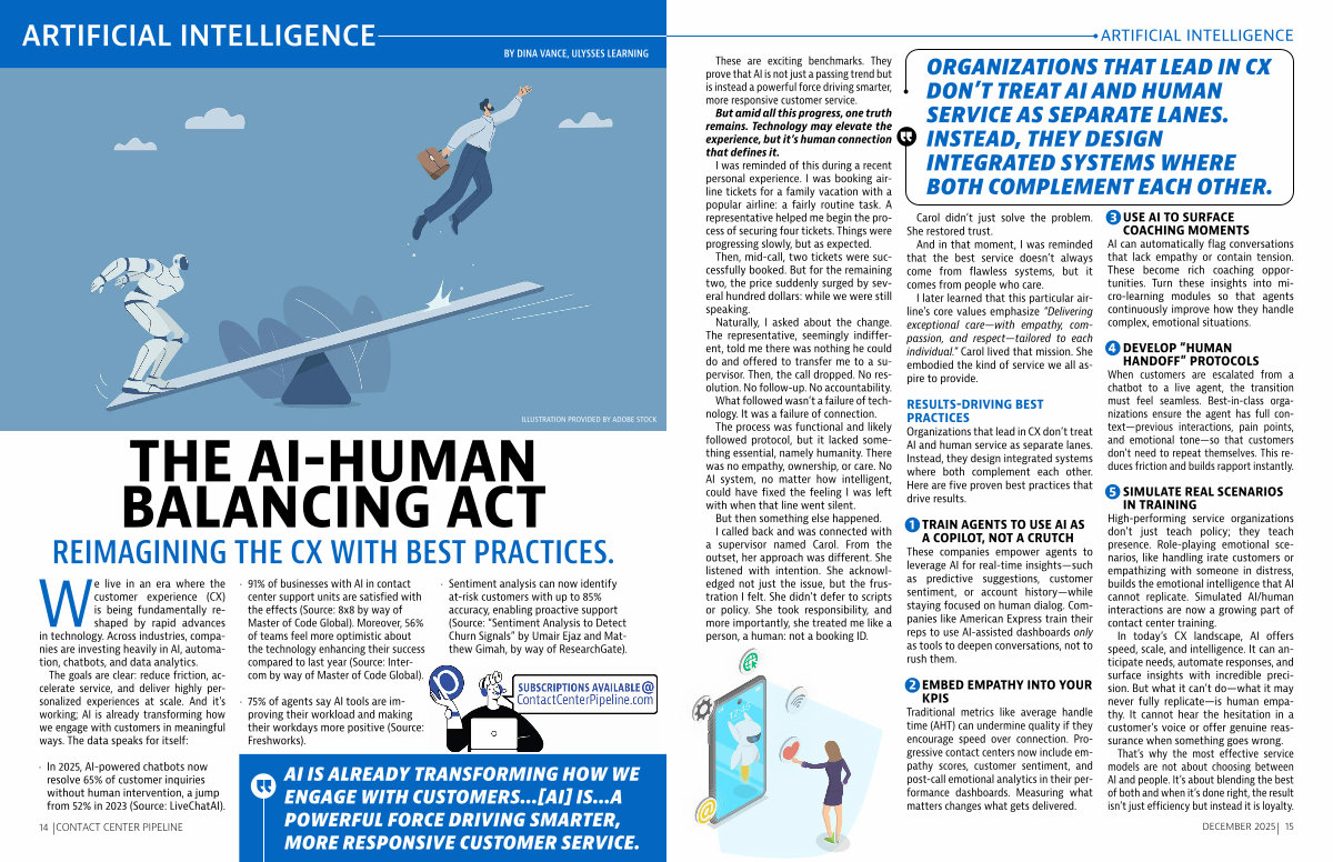 We live in an era where the customer experience( CX) is being fundamentally reshaped by rapid advances in technology. Across industries, companies are investing heavily in AI, automation, chatbots, and data analytics. The goals are clear: reduce friction, accelerate service, and deliver highly personalized experiences at scale. And it’ s working; AI is already transforming how we engage with customers in meaningful ways. The data speaks for itself: