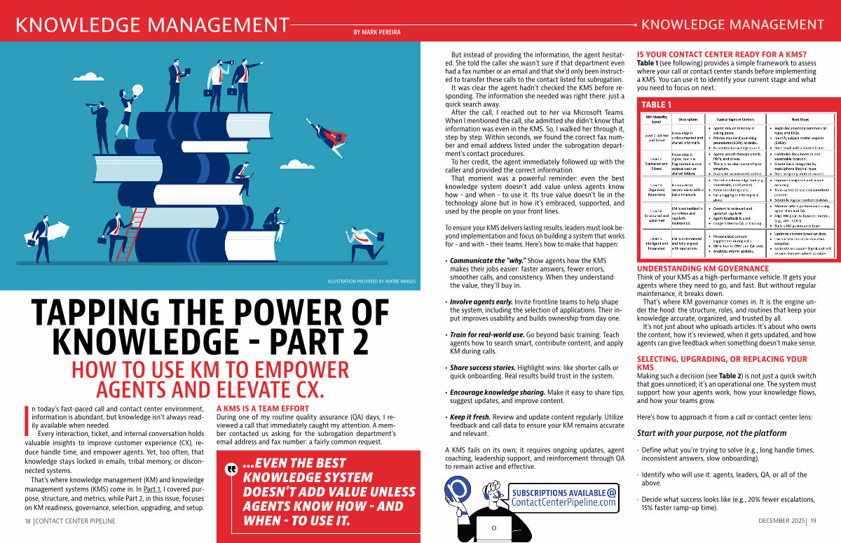 That moment was a powerful reminder: even the best knowledge system doesn ' t add value unless agents know how- and when- to use it. Its true value doesn ' t lie in the technology alone but in how it ' s embraced, supported, and used by the people on your front lines.