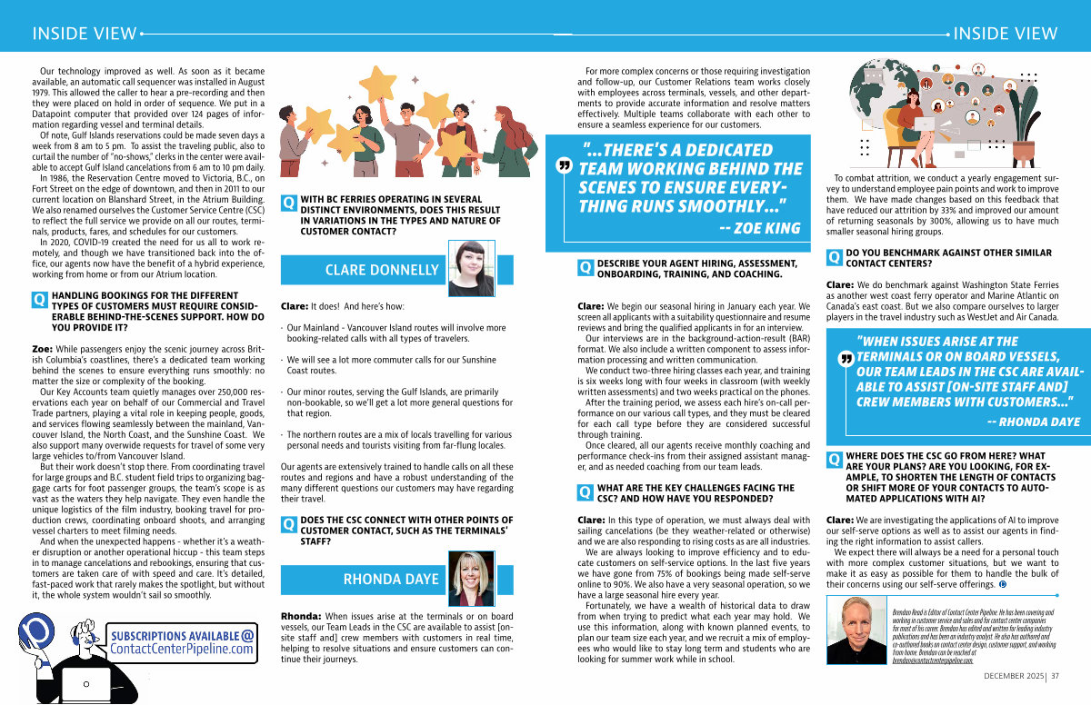 Rhonda: When issues arise at the terminals or on board vessels, our Team Leads in the CSC are available to assist [ onsite staff and ] crew members with customers in real time, helping to resolve situations and ensure customers can continue their journeys.