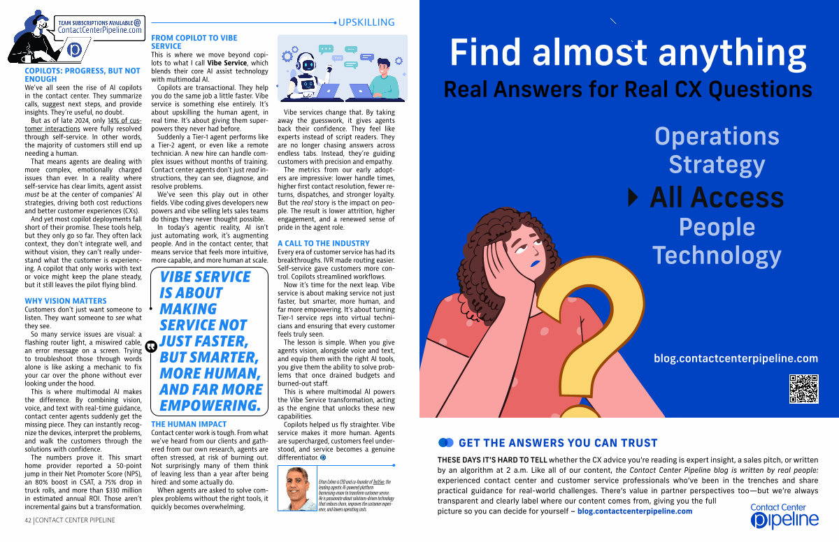 THESE DAYS IT’ S HARD TO TELL whether the CX advice you’ re reading is expert insight, a sales pitch, or written by an algorithm at 2 a. m. Like all of our content, the Contact Center Pipeline blog is written by real people: experienced contact center and customer service professionals who’ ve been in the trenches and share practical guidance for real-world challenges. There’ s value in partner perspectives too— but we’ re always transparent and clearly label where our content comes from, giving you the full picture so you can decide for yourself – blog. contactcenterpipeline. com