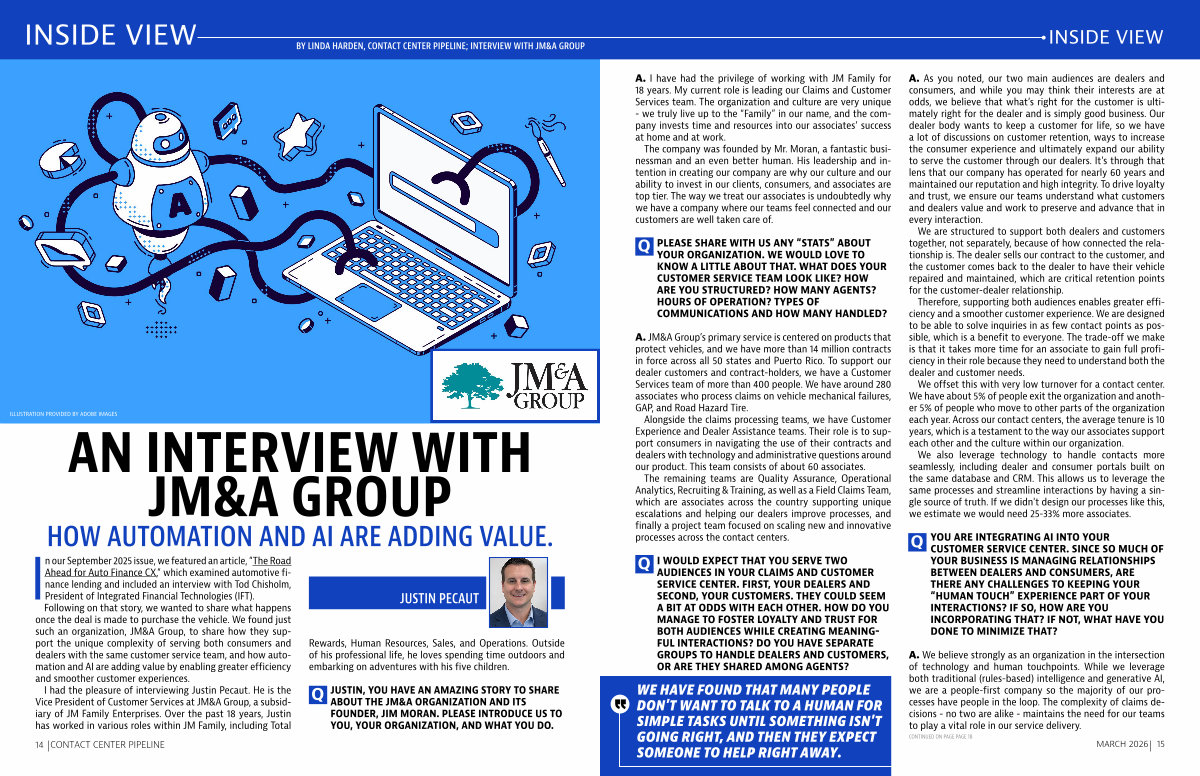 YOU ARE INTEGRATING AI INTO YOUR CUSTOMER SERVICE CENTER. SINCE SO MUCH OF YOUR BUSINESS IS MANAGING RELATIONSHIPS BETWEEN DEALERS AND CONSUMERS, ARE THERE ANY CHALLENGES TO KEEPING YOUR“ HUMAN TOUCH” EXPERIENCE PART OF YOUR INTERACTIONS? IF SO, HOW ARE YOU INCORPORATING THAT? IF NOT, WHAT HAVE YOU DONE TO MINIMIZE THAT?