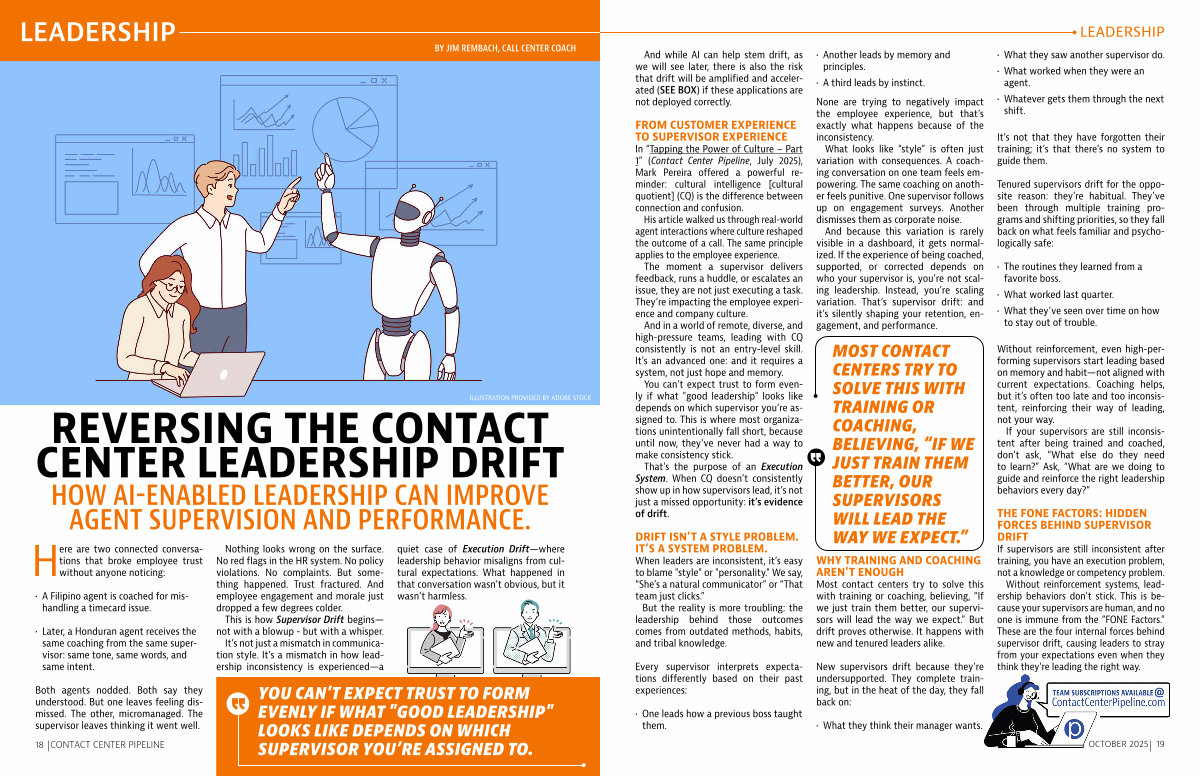 Most contact centers try to solve this with training or coaching, believing,“ If we just train them better, our supervisors will lead the way we expect.” But drift proves otherwise. It happens with new and tenured leaders alike.